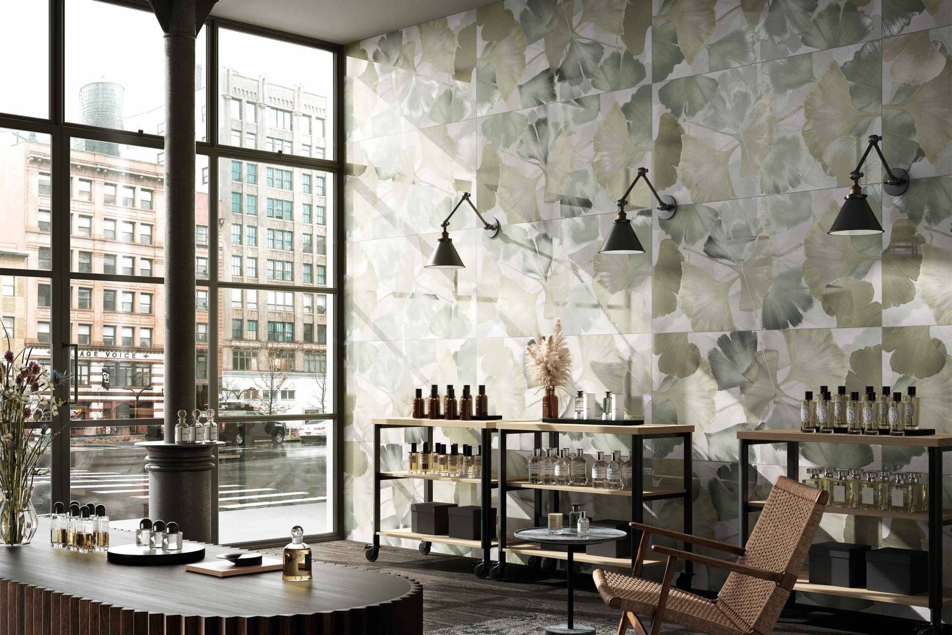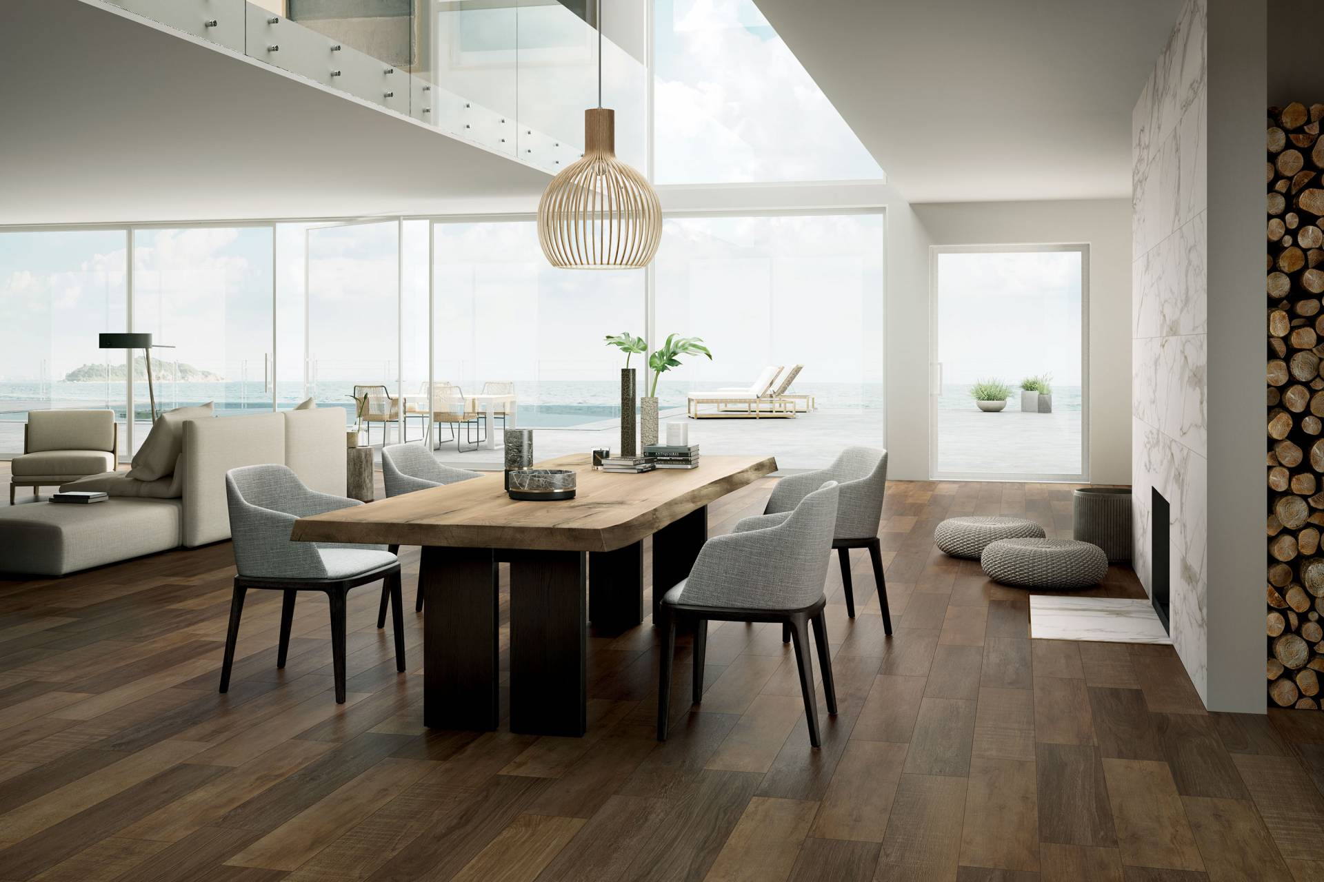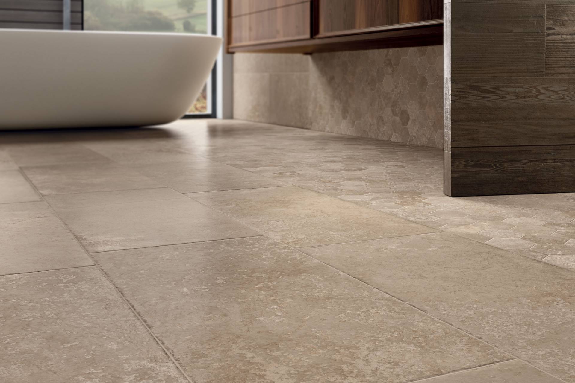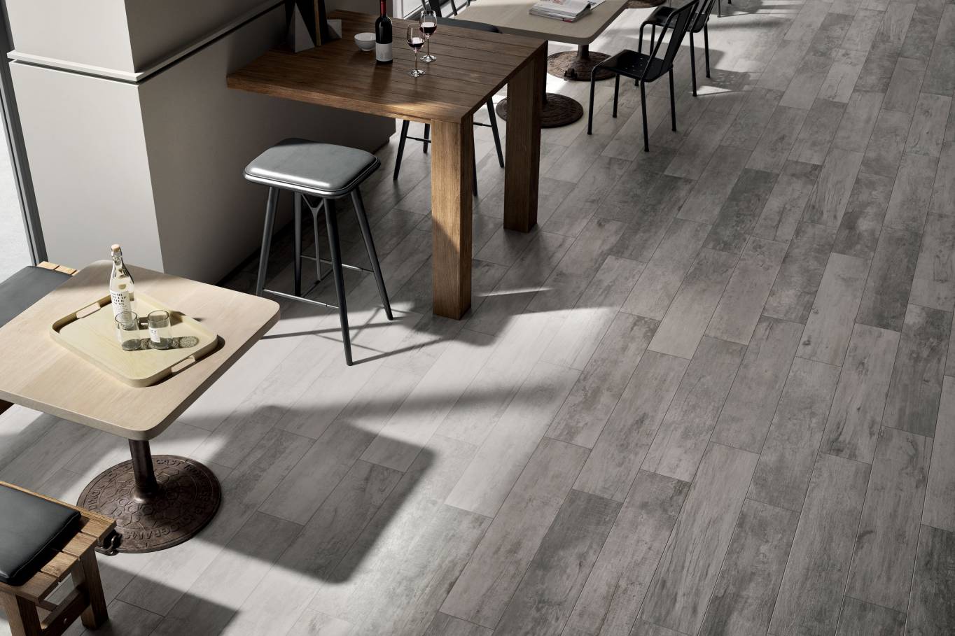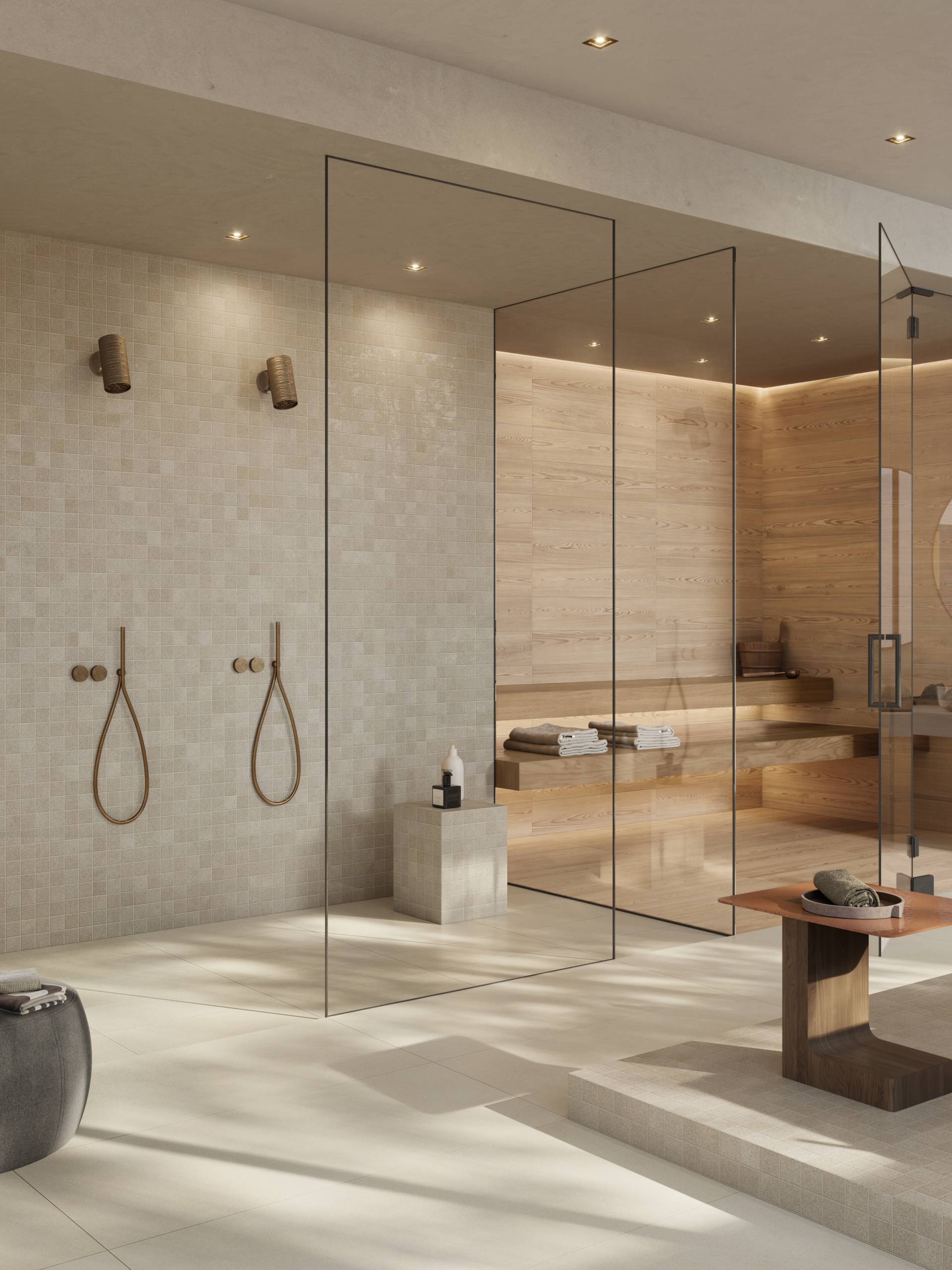 A complete surface system made to combine and mix contemporary looks such as wood, fabric, resin, terrazzo and stone looks, vivid colors, mosaics, and decors.