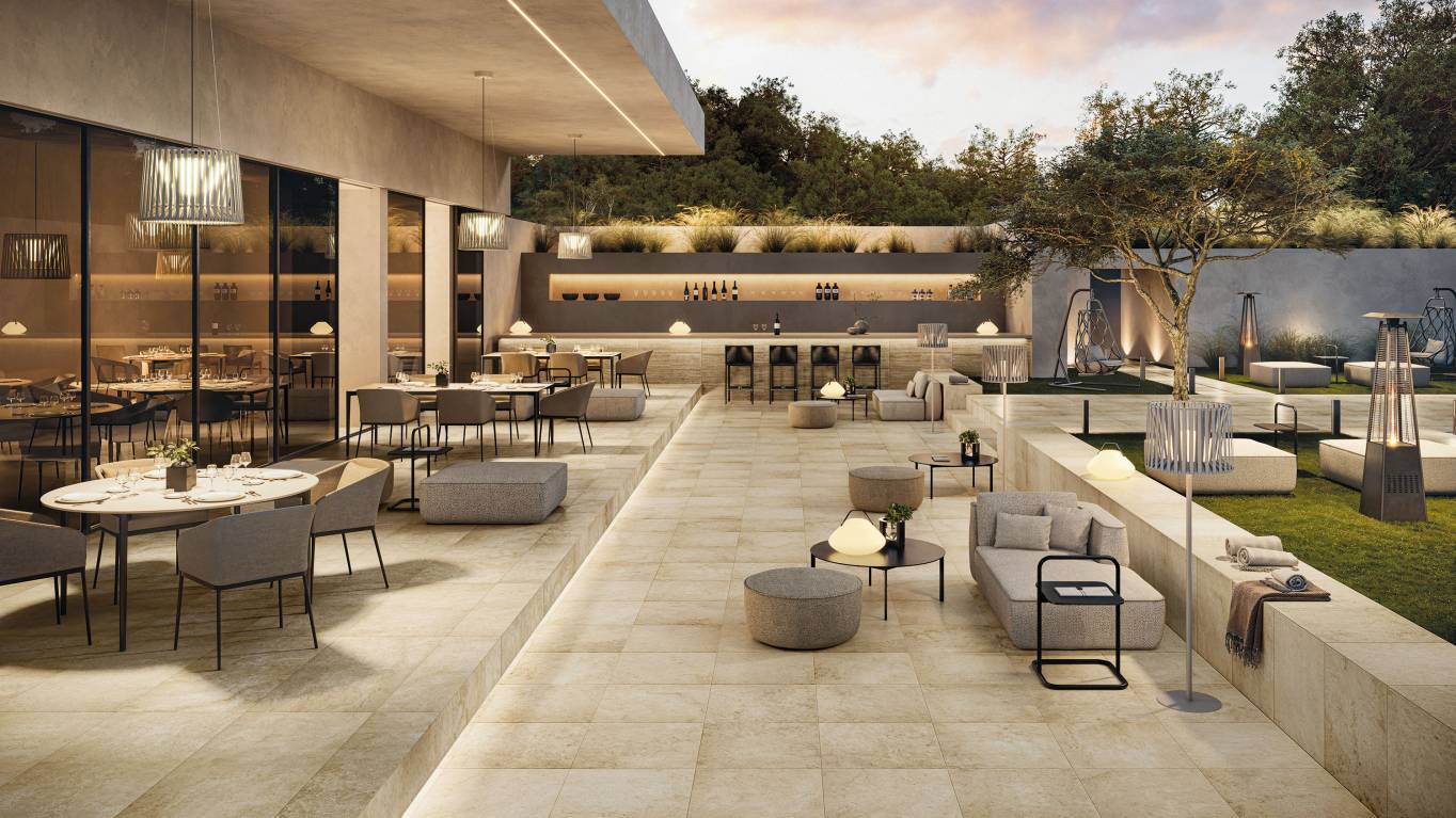 A highly performing range of 20 mm thickness porcelain pavers. Perfectly suited for indoor and outdoor environments, it combines technical features and aesthetic refinement.