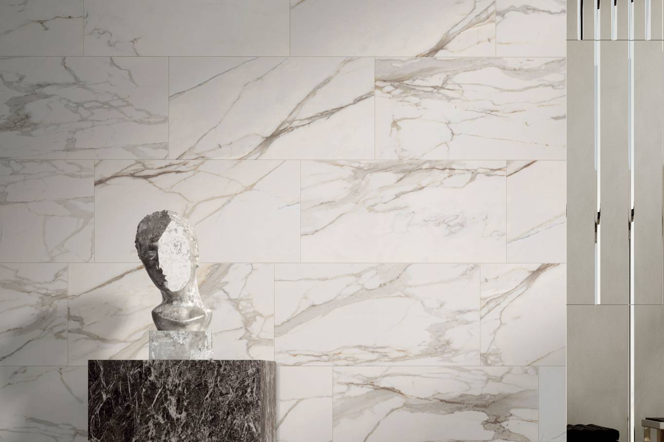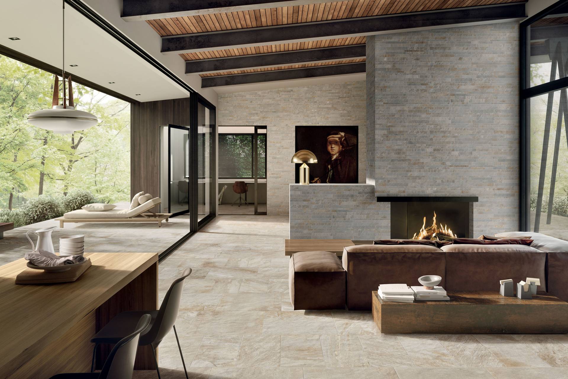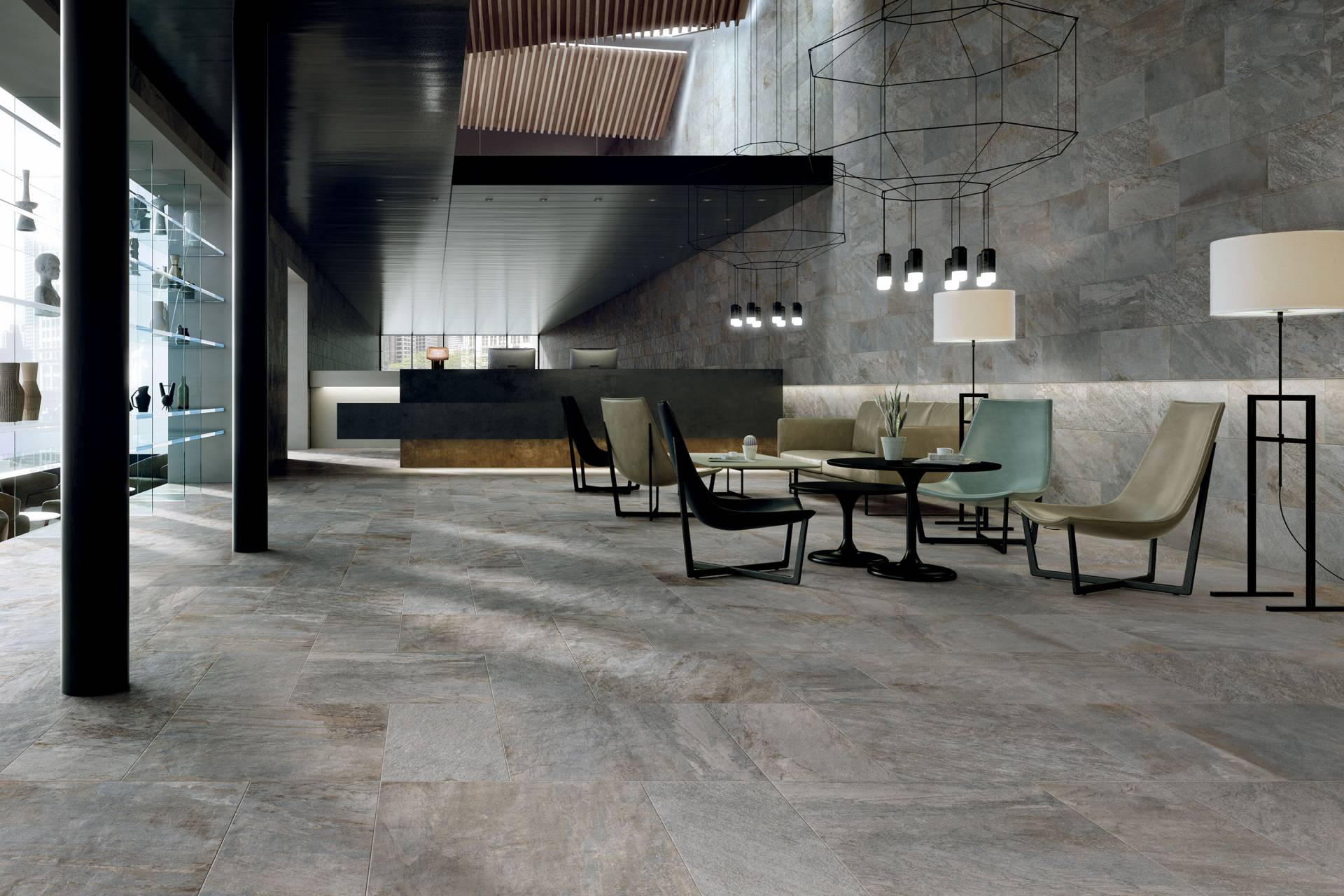 A comprehensive offer of porcelain veneers for indoor and outdoor environments, redefining the longstanding American tradition of stone-inspired walls and decors.