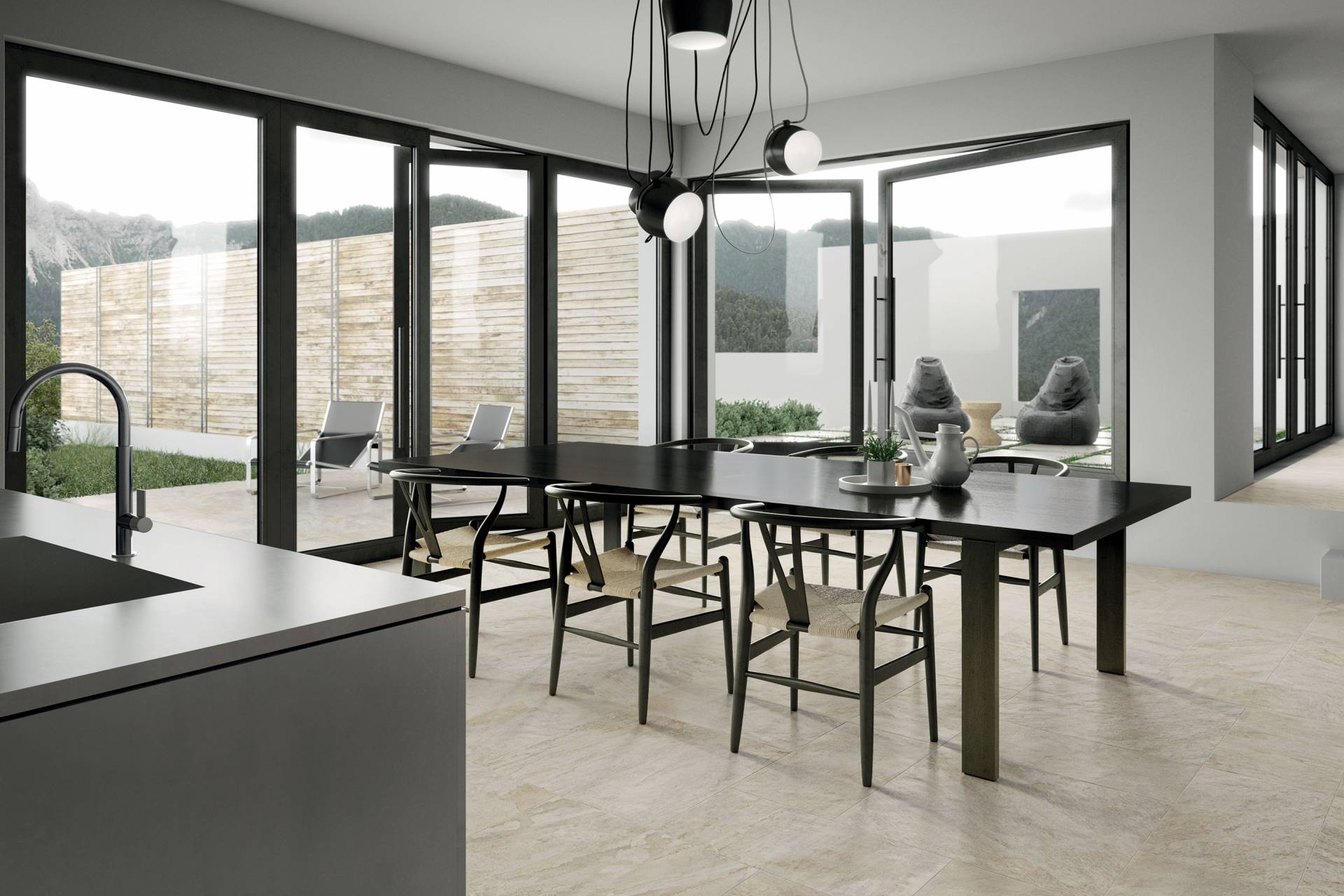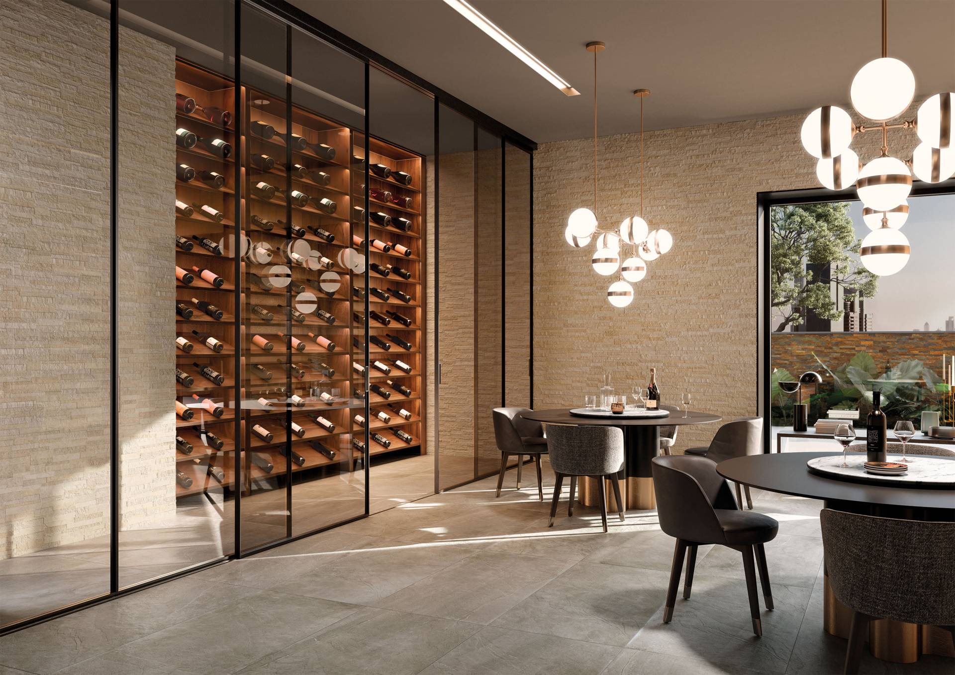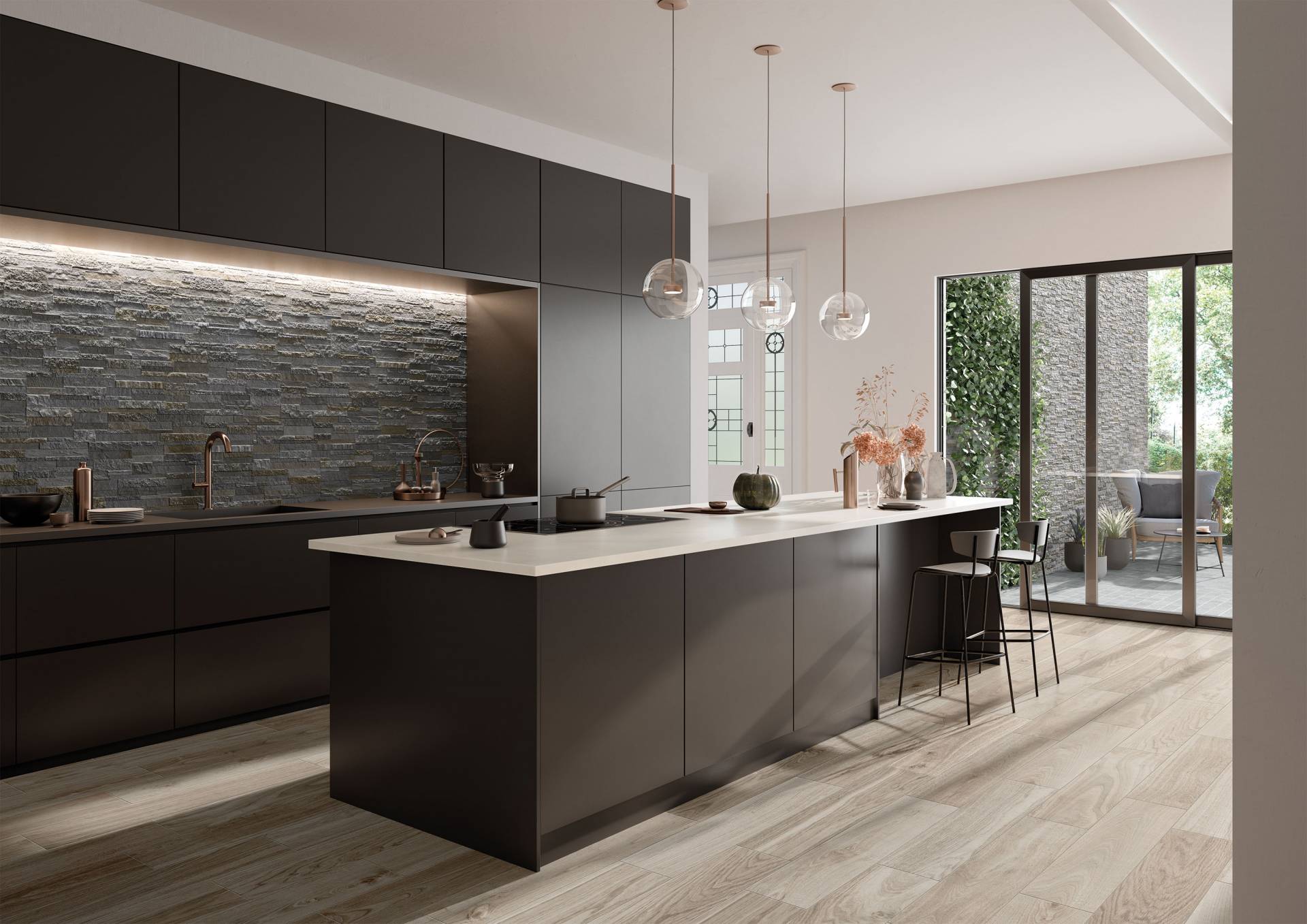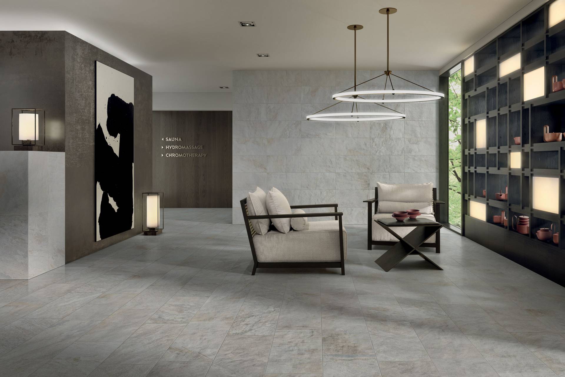 A comprehensive offer of porcelain veneers for indoor and outdoor environments, redefining the longstanding American tradition of stone-inspired walls and decors.