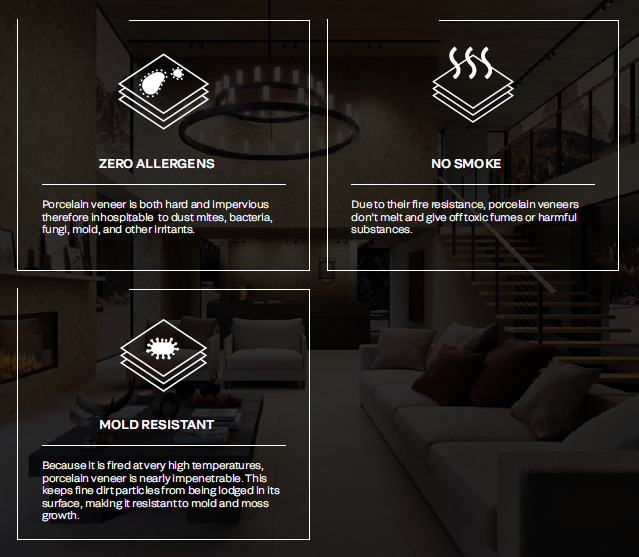Designing an environmentally friendly space is easier with Landmark Porcelain Veneers. Manufactured without harmful materials, they are a perfect solution for surrounding nature, as well as for your family.