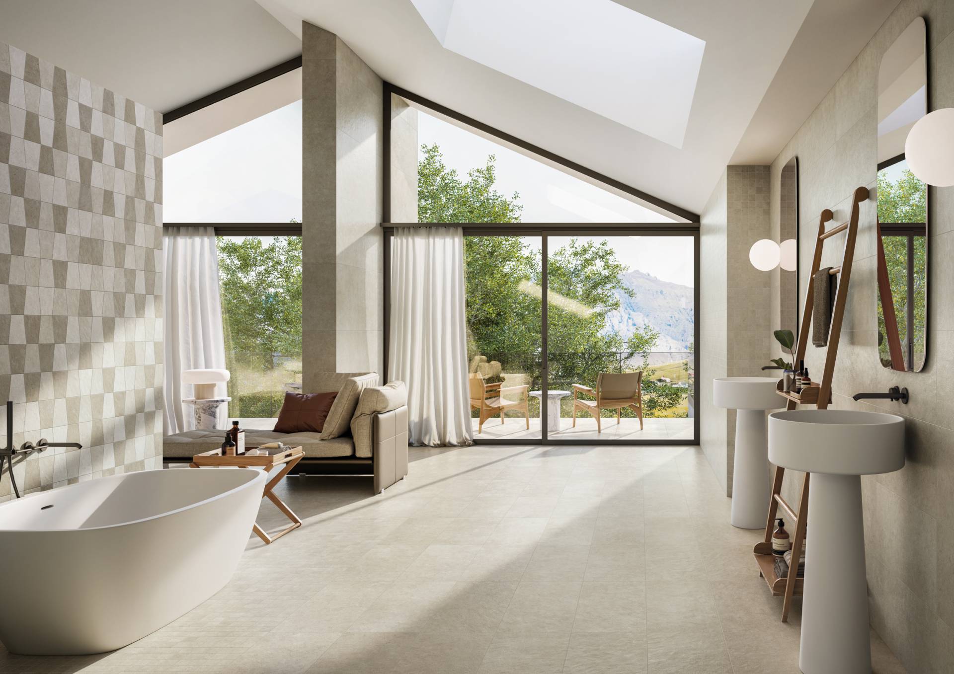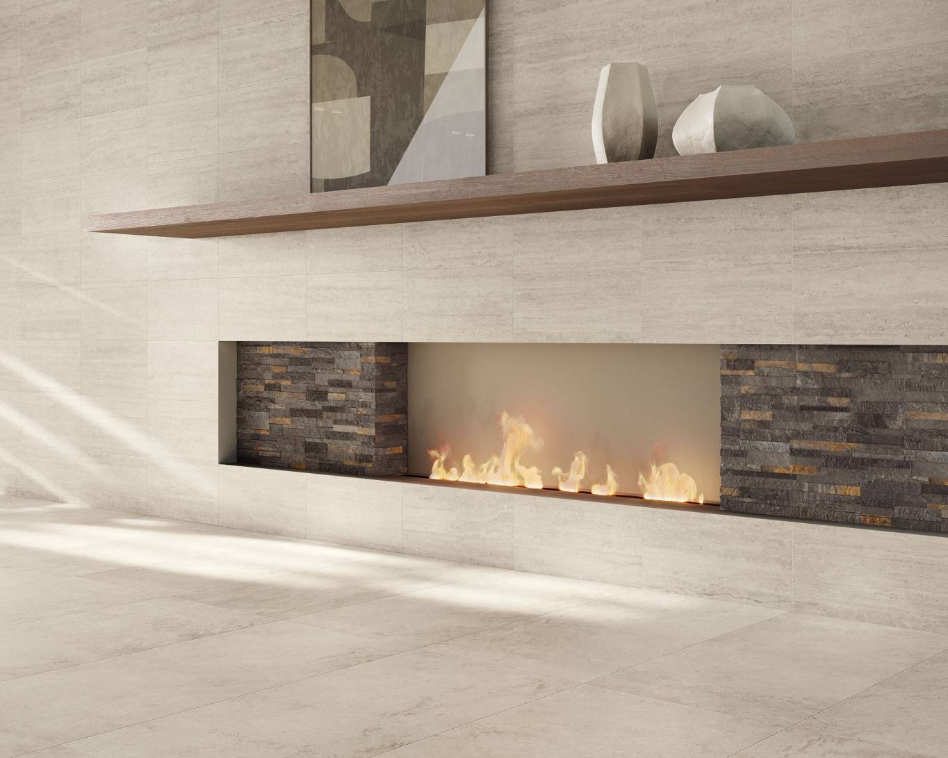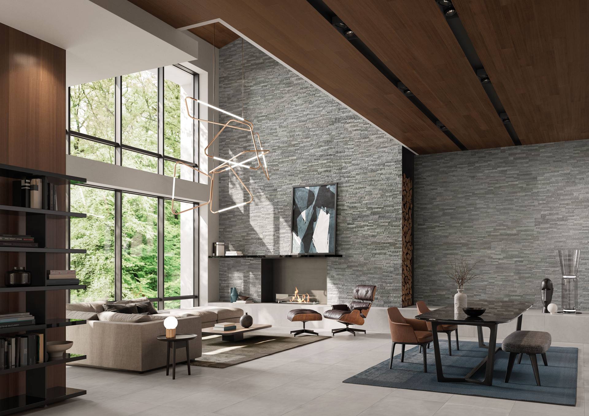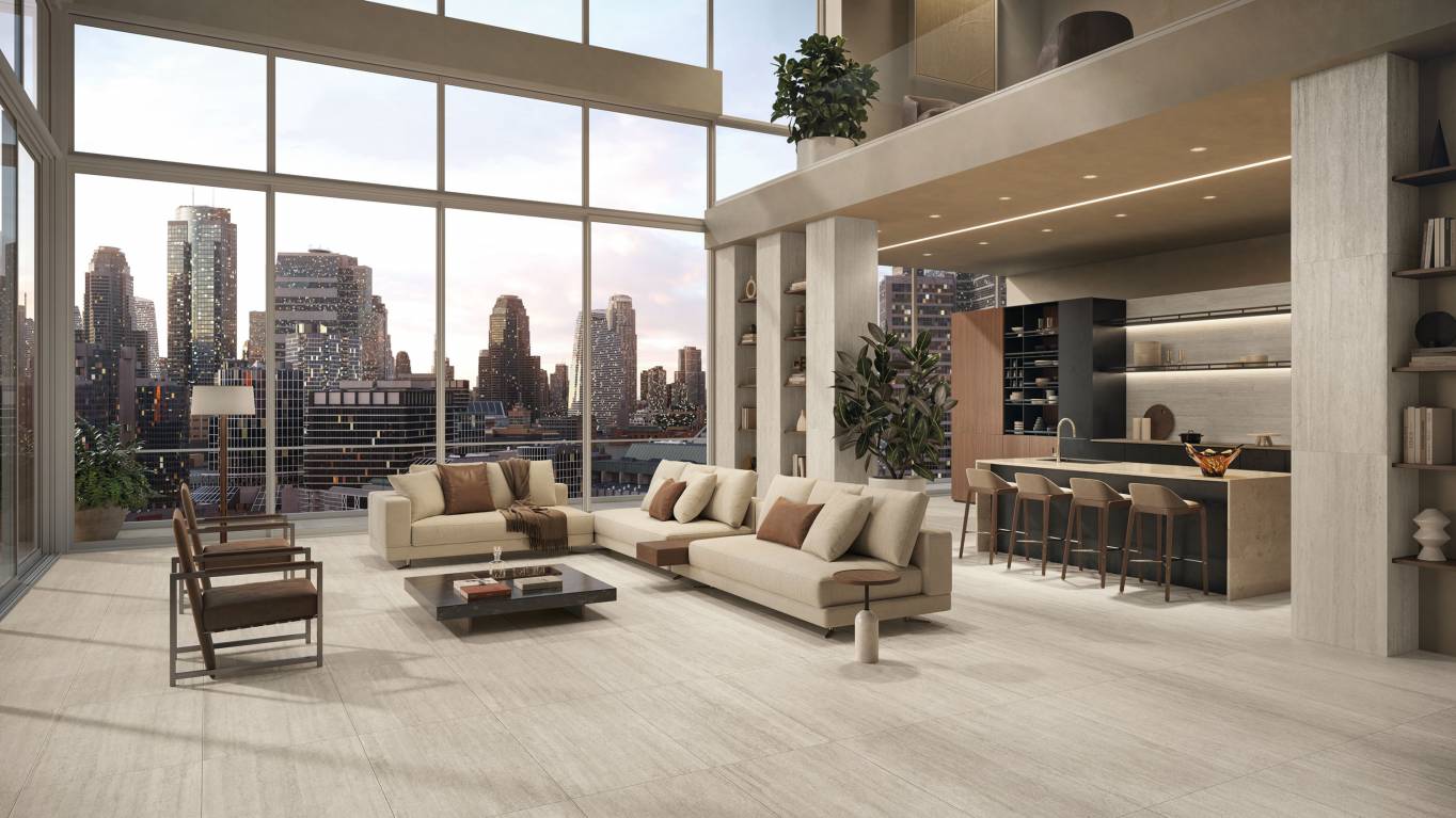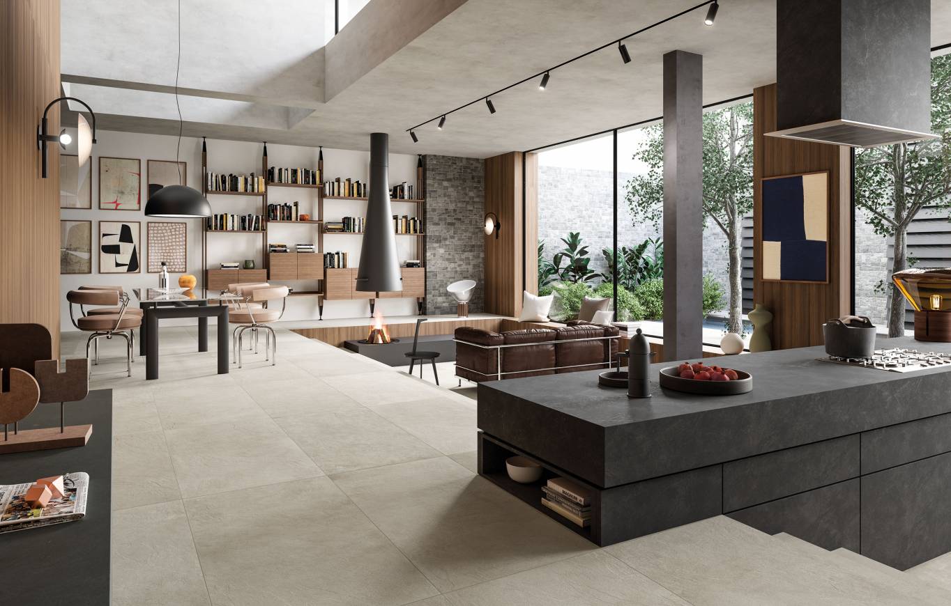 A comprehensive offer of porcelain veneers for indoor and outdoor environments, redefining the longstanding American tradition of stone-inspired walls and decors.