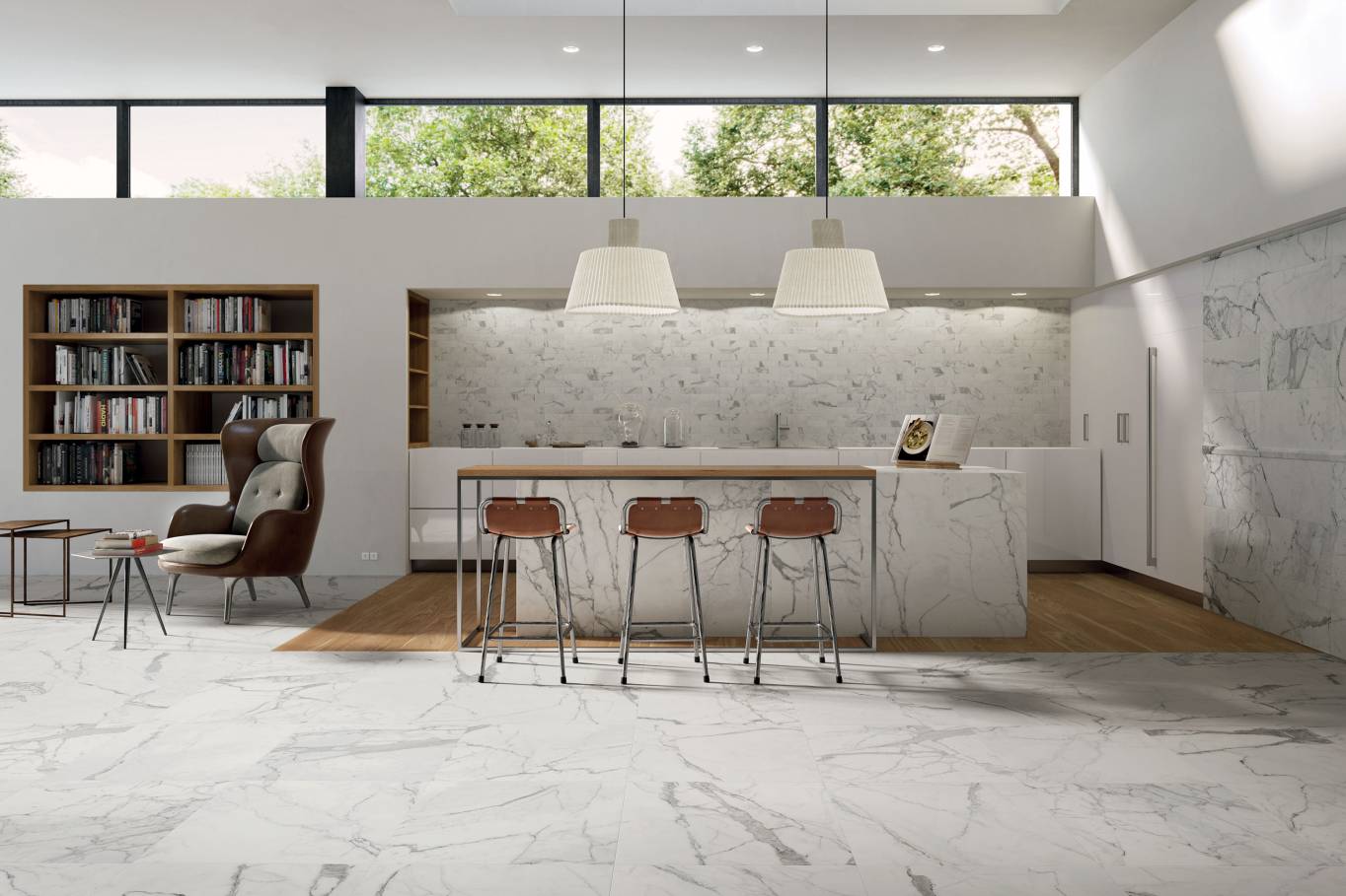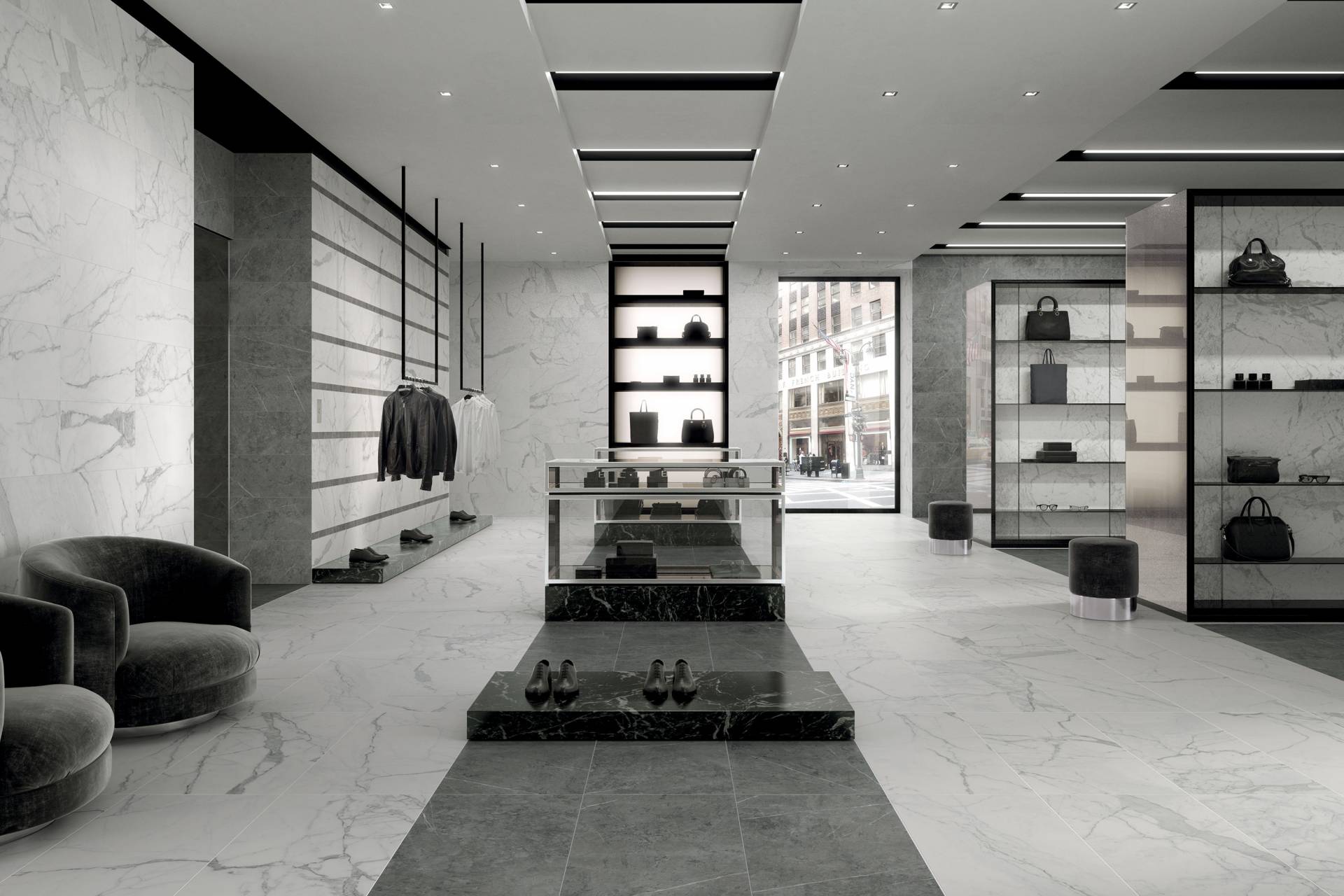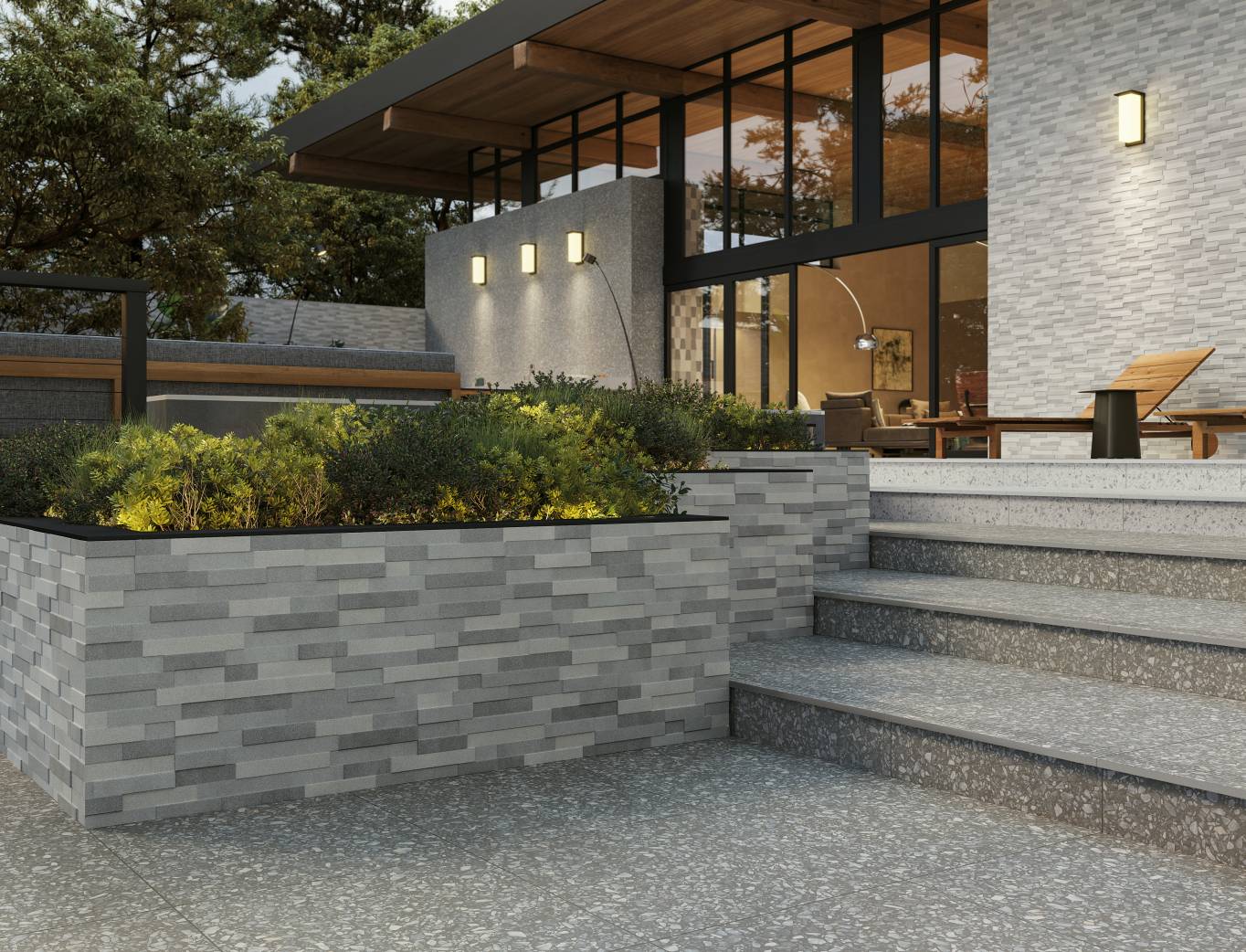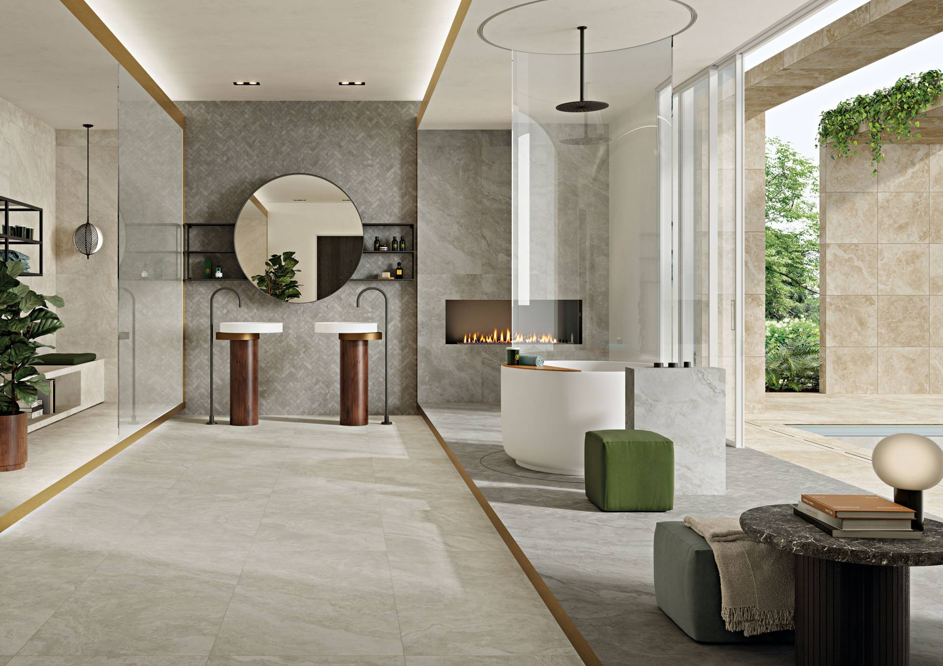 A comprehensive offer of porcelain veneers for indoor and outdoor environments, redefining the longstanding American tradition of stone-inspired walls and decors.