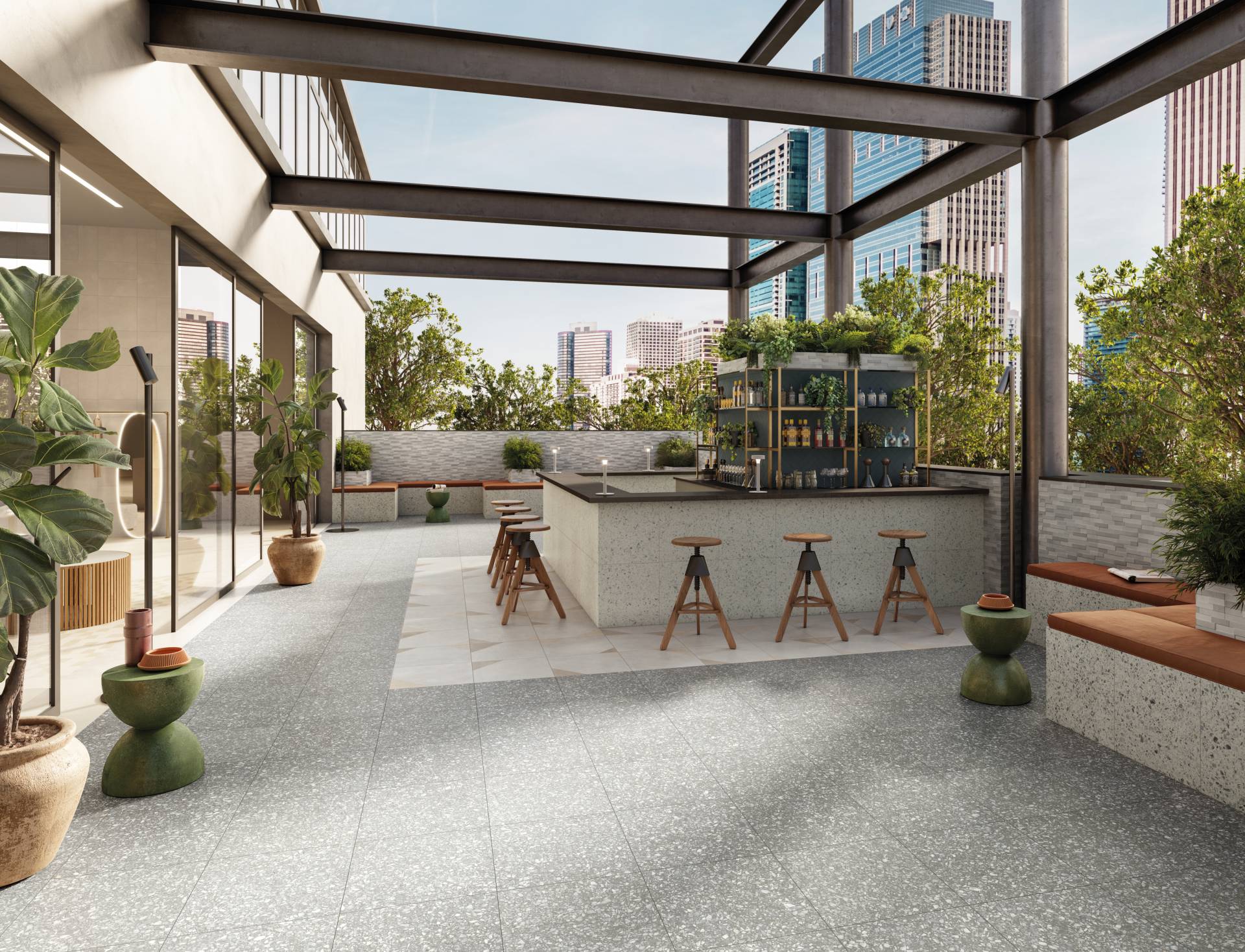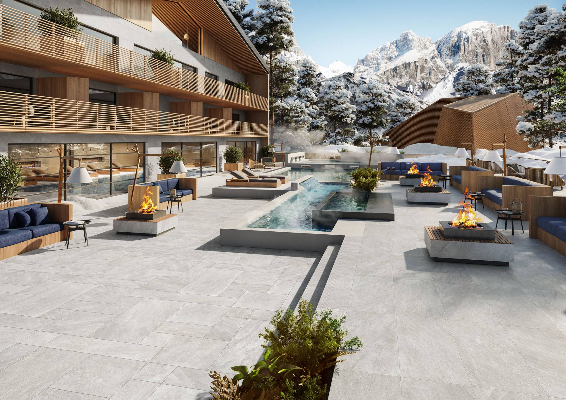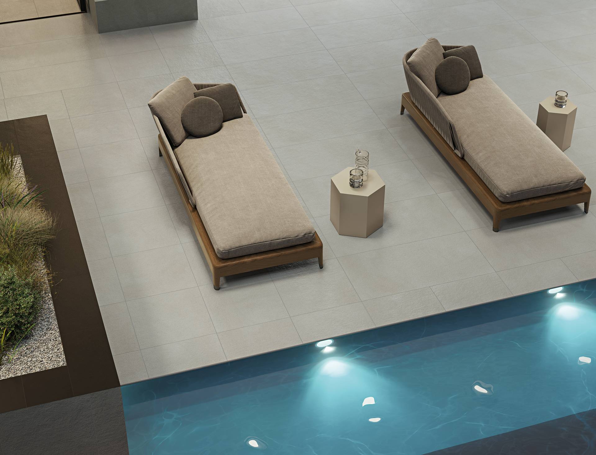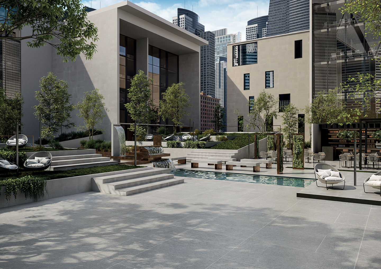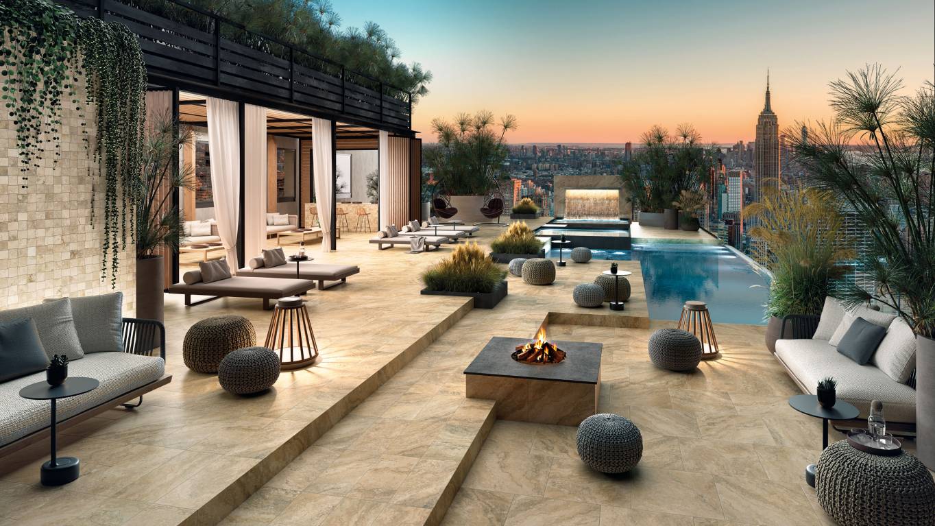 A highly performing range of 20 mm thickness porcelain pavers. Perfectly suited for indoor and outdoor environments, it combines technical features and aesthetic refinement.