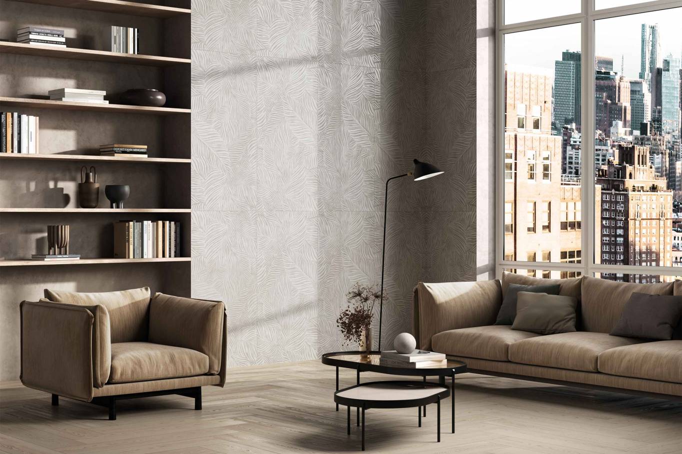 Atelier introduces a new dimension to Veneer World with its sophisticated three-dimensional surface design. Thin lines of varying thicknesses, shapes, and dimensions create a harmonious interplay of textures.